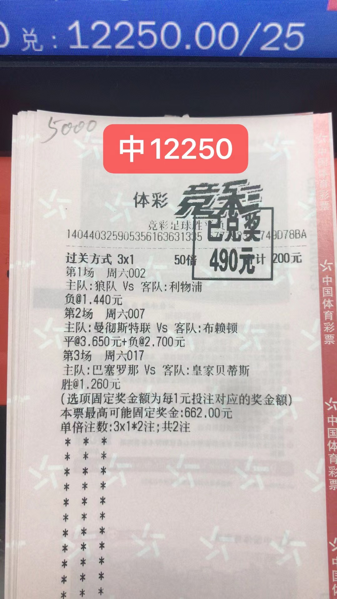 北单半全场玩法撬动95倍收益-北单实体店实票展示